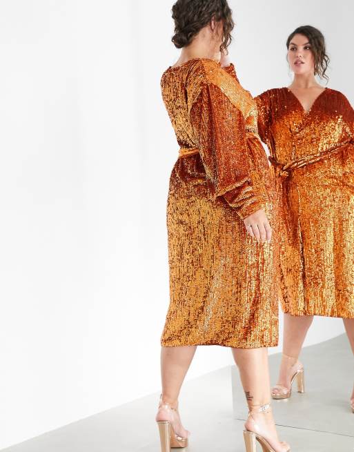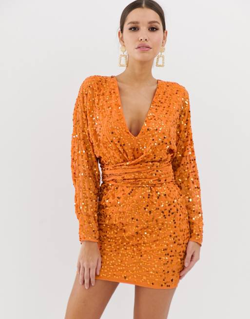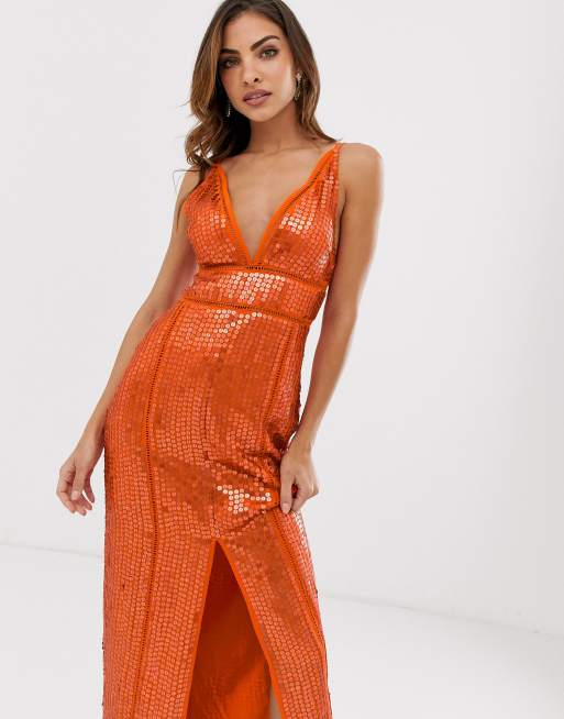 Asos Orange Sequin Dress Asos Orange Sequin Dress / She styled her orange asos dress with a gray hue tights, brown payless shoes, and blue vintage belt.