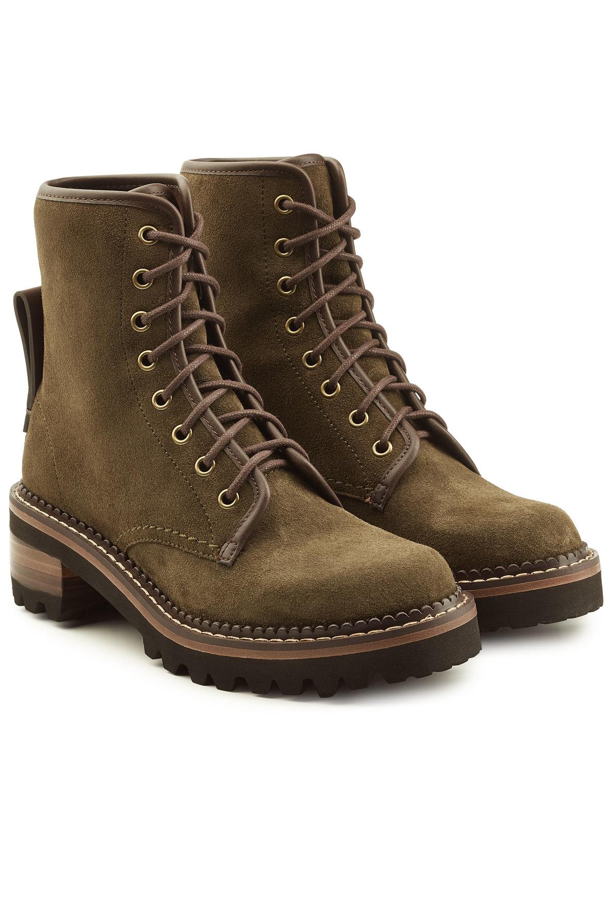 Chloe Suede Ankle Boots Chloe Suede Ankle Boots : Chloe women's chloa ankle boots calfskin suede decorative button embossing olive.