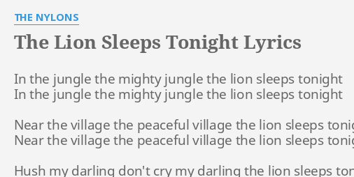The Lion Sleeps Tonight Chords From Wwwtraditionalmusiccouk The Tokens C G D In The Jungle The Mighty Jungle The Lion Sleeps Tonight D C In The Village The Peaceful Village The People - Original lyrics of mighty jungle song by exxocet.