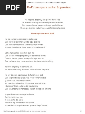 Letras De Rap Rimas Para Cantar Improvisar Frases De Rap Rimas De Rap En Espanol Musica Hip Hop Ocio - Bajo este lema, cada ano y desde hace 12, la red bull batalla de los gallos busca al mc mas rapido, brillante y brutal.